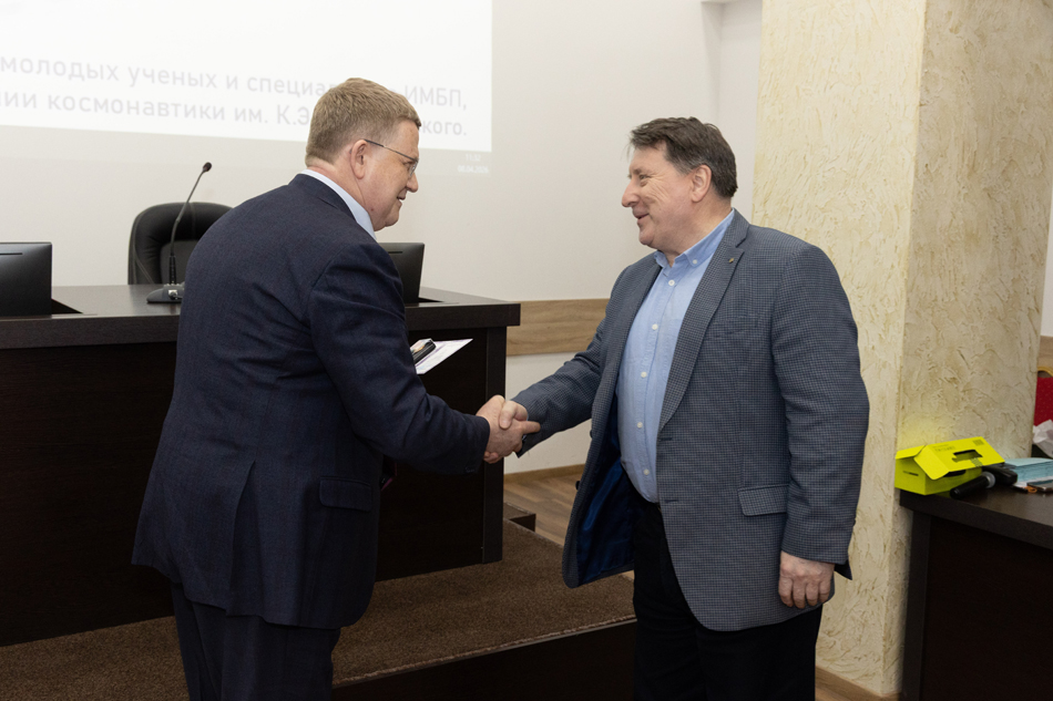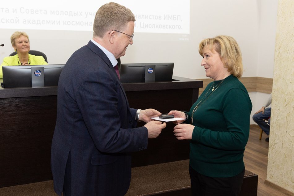 Ученого совета ИМБП РАН, Совета молодых ученых и специалистов Российской академии наук и Российской академии космонавтики им. К.Э. Циолковского. На заседании выступил Соловьев В.А.,
