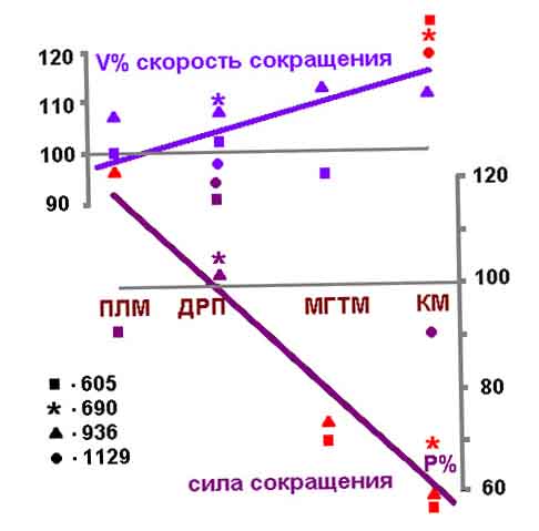 Скорость сокращения другой разгибательной мышцы - МГТМ, также увеличивалась,