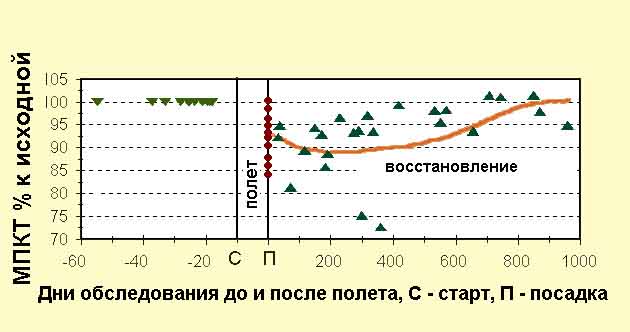 полета. Как показано выше, у части космонавтов наблюдали выраженную отрицательную