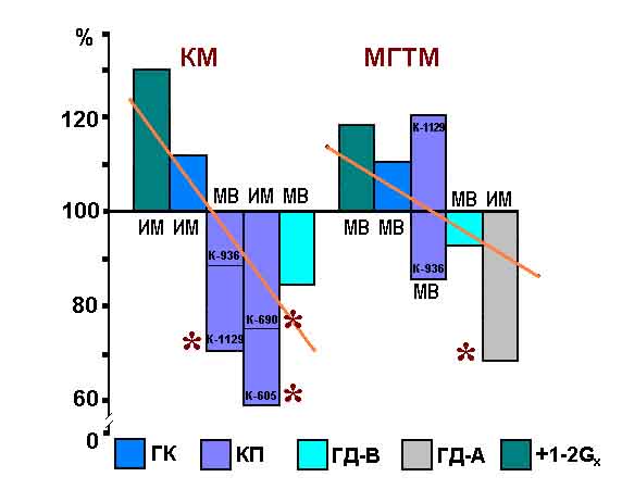 достоверно уменьшалась относительная (к массе тела) масса КМ и МГТМ.