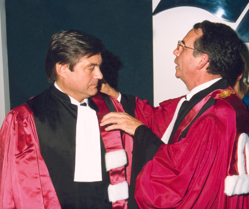 Head of the Lion University (France) is rewarding A.I. Grigoriev with the Honoris Causa medal, 1989.