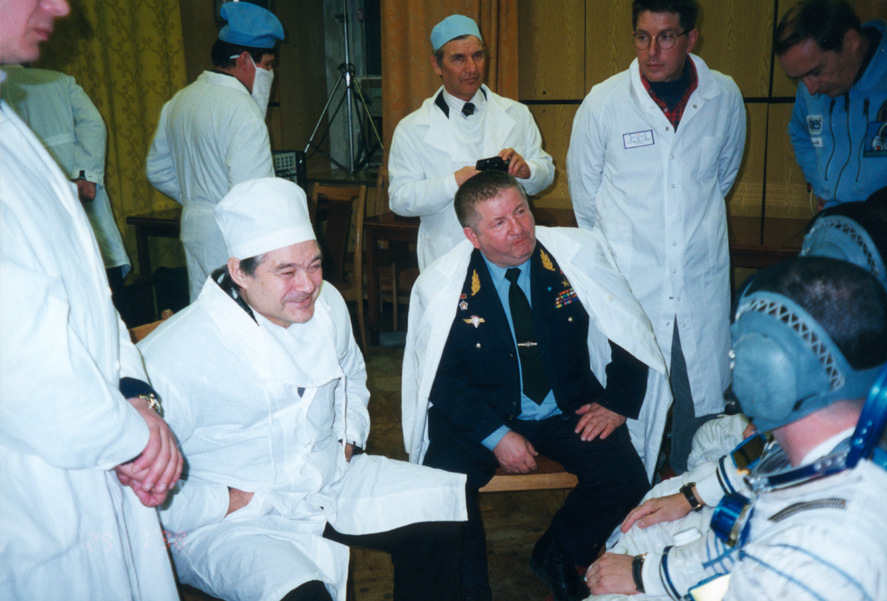 In the Museum of Aviation and Cosmonautics, Washington, the USA, 1979. A.I. Grigoriev and O.G. Gazenko are carrying out medical examination, 1992. Chairman of the General Medical Commission A.I. Grigoriev is bidding farewell before launch, 1995.