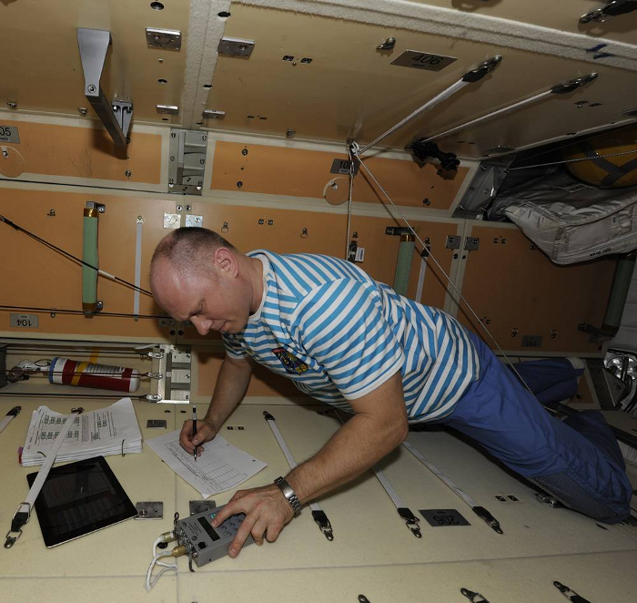 Пресс-служба Роскосмоса Космонавты российского сегмента Международной космической станции продолжают вести работу по космическому эксперименту «Матрешка-Р». Одной из основных задач эксперимента является разработка новых методов и средств для Службы радиационной безопасности пилотируемых космических полетов ГНЦ РФ – ИМБП РАН, предназначенных для достижения максимальной точности оценки радиационной нагрузки на организм космонавта при выполнении космического полета. Исследование по изучению распределения доз радиации в теле космонавта осуществляется с 2011 года в рамках совместного российско-японского эксперимента «Матрешка-PADLES». Эксперимент проводится в японском модуле «Кибо» в различных фазах цикла солнечной активности с помощью оснащенного пассивными интегрирующими детекторами российского шарового тканеэквивалентного фантома «Матрешка-Р», имитирующего тело космонавта, и набора из 17 японских пассивных детекторов «PADLES», размещенных в различных точках модуля.