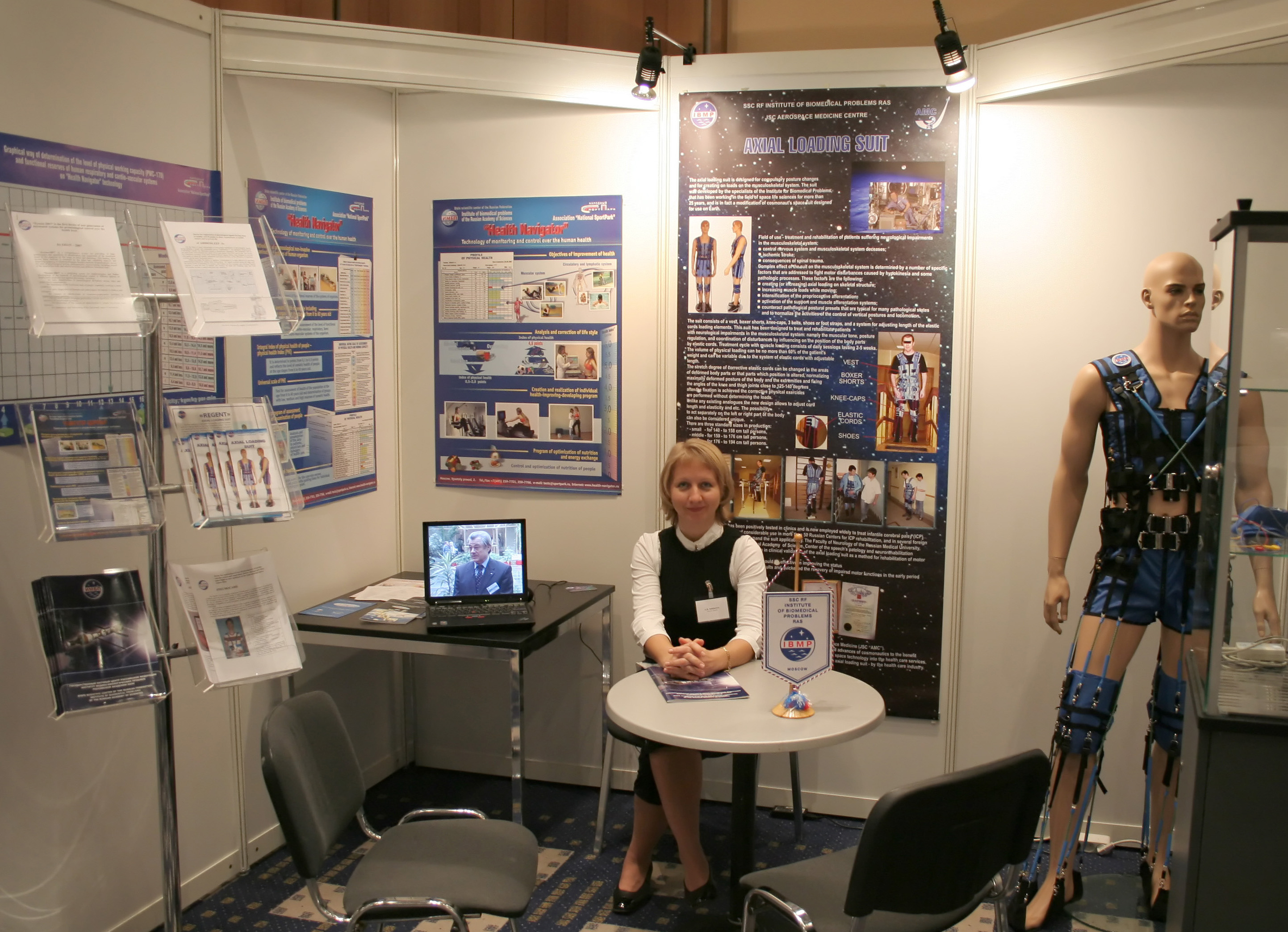 Свою продукцию также представили российские фирмы "ДИВИСИ ГРУП" (экспонат - телемедицинский комплекс, планируется для обеспечения медицинской поддержки проекта "Марс-500"), ООО "Медицинские компьютерные системы" (экспонаты: компьютерная система скрининга сердца КАРДИОВИЗОР, компьютерная система контроля уровня стресса СКУС, компьютерный полиграфический усилитель КАРДи2-НП, усилитель-регистратор КАРДи3/9 с беспроводным интерфейсом, биомедицинские датчики NeoSens), Научно-медицинская фирма "Статокин" (экспонат: Апаратно-программный комплекс "Окулостим" для вестибулометрического, отоневрологического и психофизиологического тестирования), Научно-производственное объединение "Динафорс" (экспонат: Нейро-ортопедический реабилитационный костюм "Атлант" - средство для реабилитации и лечения больных с нарушениями опорно-двигательного аппарата).