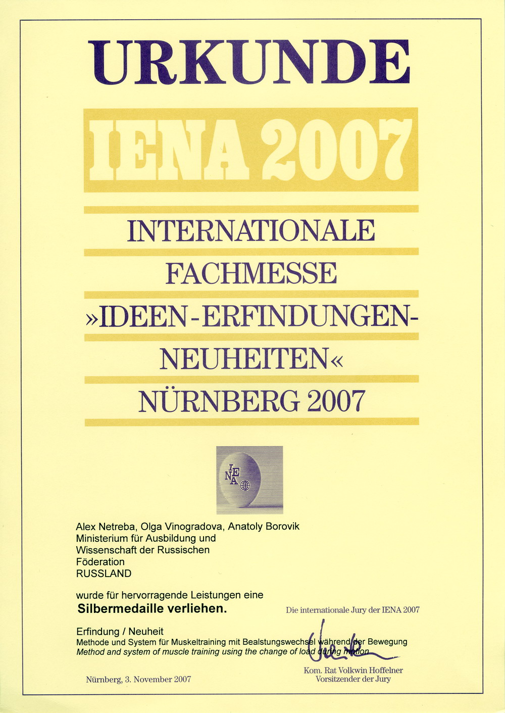 С 1 по 4 ноября 2007 года Институт принимал участие в 59-й Международной выставке "Идеи - изобретения - инновации" ("IENA-2007"), проводившейся в г. Нюрнберге, Германия.