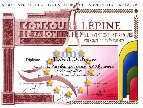 Разработка Института "Тренировочно-измерительный комплекс" (Авторы: Нетреба А.И., Газеев Г.М., Химорода Н.Н., Виноградова О.Л.) награждена бронзовой медалью и дипломом.