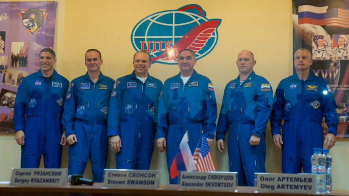 Сегодня, 26 сентября в 00 ч. 58 мин 50 с, с космодрома Байконур произведён успешный пуск ракеты «Союз-ФГ» с транспортным пилотируемым кораблем (ТПК) «Союз ТМА-10М». В 06 ч 45 мин 27 с корабль успешно состыковался с Международной космической станцией. ТПК «Союз ТМА-10М» причалил к малому исследовательскому модулю (МИМ2) «Поиск» российского сегмента МКС. Процесс сближения проводился в автоматическом режиме под контролем специалистов Центра управления полётами ФГУП ЦНИИмаш и экипажа ТПК. После открытия переходных люков между кораблем и станцией на МКС начал работу экипаж 37/38-й длительной экспедиции в составе командира Федора Юрчихина (Роскосмос), бортинженеров Карен Найберг (НАСА), Луки Пармитано (ЕКА), Олега Котова (Роскосмос), Сергея Рязанского (Роскосмос) и Майкла Хопкинса (НАСА). В ходе работы экспедиции запланировано 35 экспериментов по 4 направлениям: «Человек в космосе. Космическая биотехнология» – 13; «Технические исследования и эксперименты» – 11; «Исследования Земли и космоса» – 8; «Образование и популяризация космических исследований» – 3. Фото и видео Роскомос, НАСА, ЦПК Meet the Expedition 37/38 Crew (видео откроется в новом окне) New Station Trio Preps for Launch in Kazakhstan (видео откроется в новом окне) Expedition 37/38 Soyuz TMA-10M Roll Out (видео откроется в новом окне) Crew Launches (видео откроется в новом окне) МКС -- врача вызывали? (видео откроется в новом окне) Пресс-конференция экипажа Союз ТМА-10М (видео откроется в новом окне)